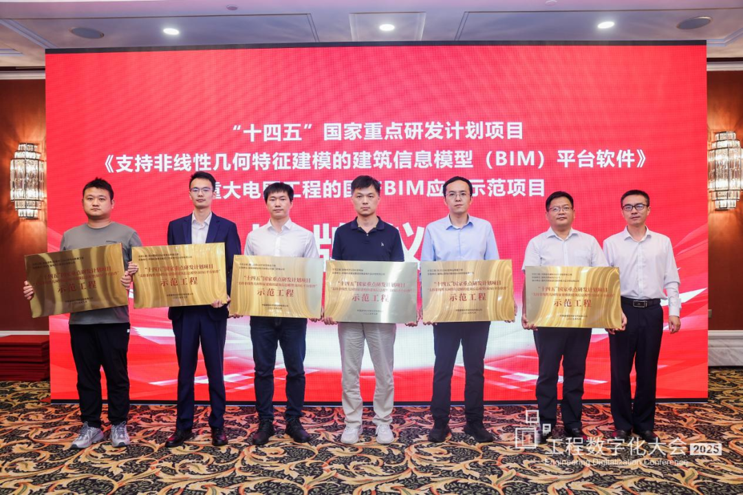 会议期间,成功举行了“十四五”国家重点研发计划项目《支持非线性几何特征建模的建筑信息模型(BIM)平台软件》重大电网工程的国产BIM应用示范项目的授牌仪式,由中北京构力科技有限公司副总经理张晓龙为应用国产BIM技术树立电力行业标杆的示范项目授牌。