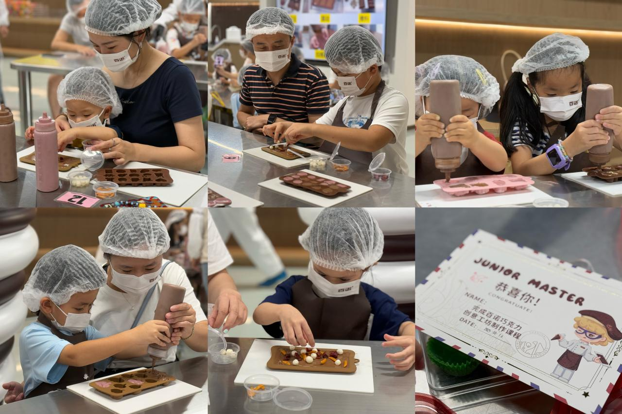 活动进入高潮环节——亲子DIY巧克力制作。在工作人员的指导下,家长与孩子携手合作,将融化的巧克力注入模具,点缀坚果、糖粒等配料,创作出独一无二的甜蜜作品。现场欢声笑语不断,孩子们在动手实践中感受到合作的快乐,家长也重温了童真时光。